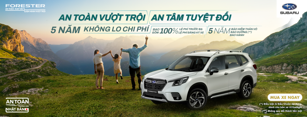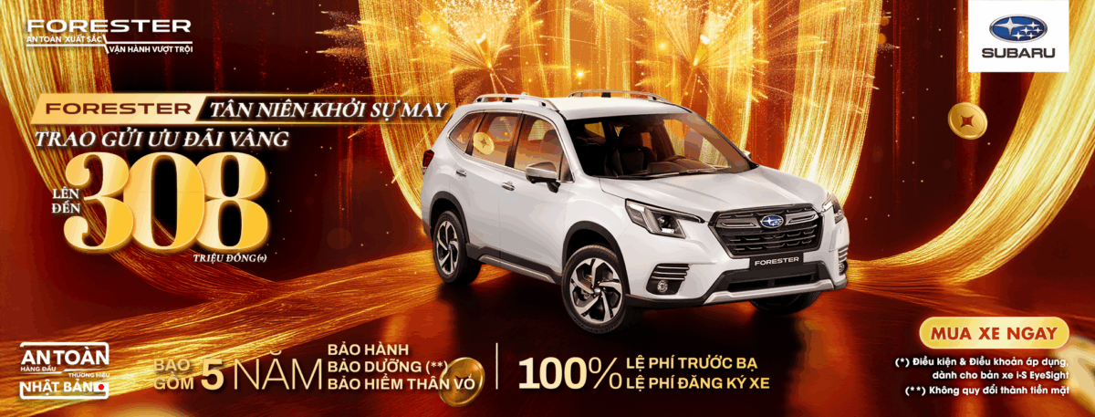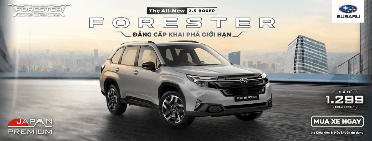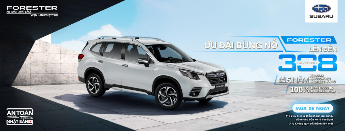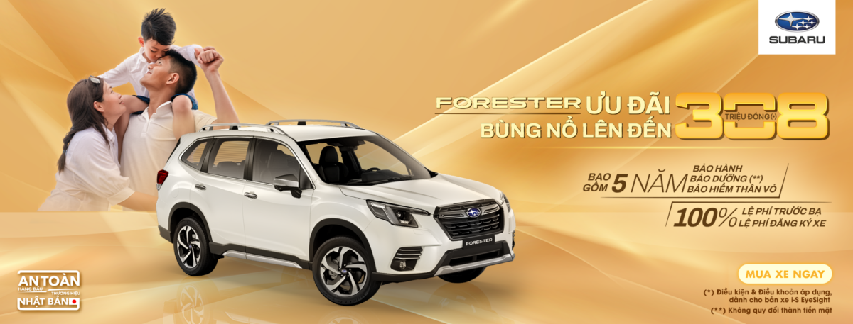 - Forester 2.0 i-S EyeSight: Giảm cực mạnh lên đến 280 triệu – phiên bản cao cấp nhất, Bảo hành 5 năm không giới hạn Km và 3 năm bảo dưỡng miễn phí. Tặng full phụ kiện Subaru, hỗ trợ tài chính linh hoạt. Số lượng giới hạn – đặt xe sớm.
