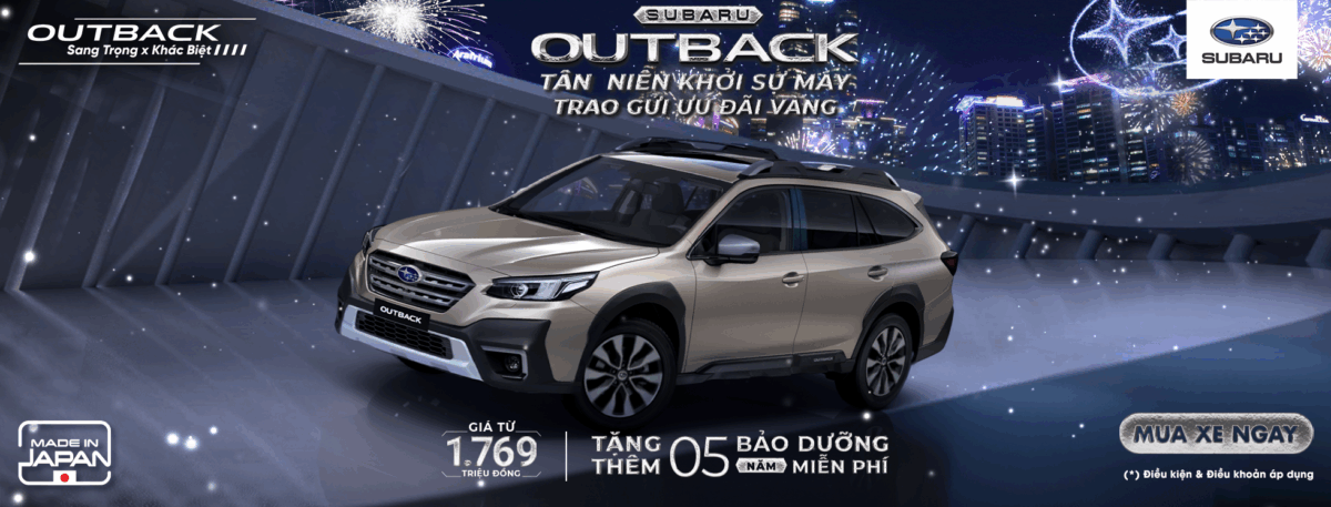 - Outback 2.5 i-T EyeSight: Giảm “khủng” 550 triệu cho xe sản xuất 2023 – bản cao cấp full EyeSight. Tặng phụ kiện chính hãng, vay ưu đãi 7.1%. Đặc quyền cho người chọn đẳng cấp.
