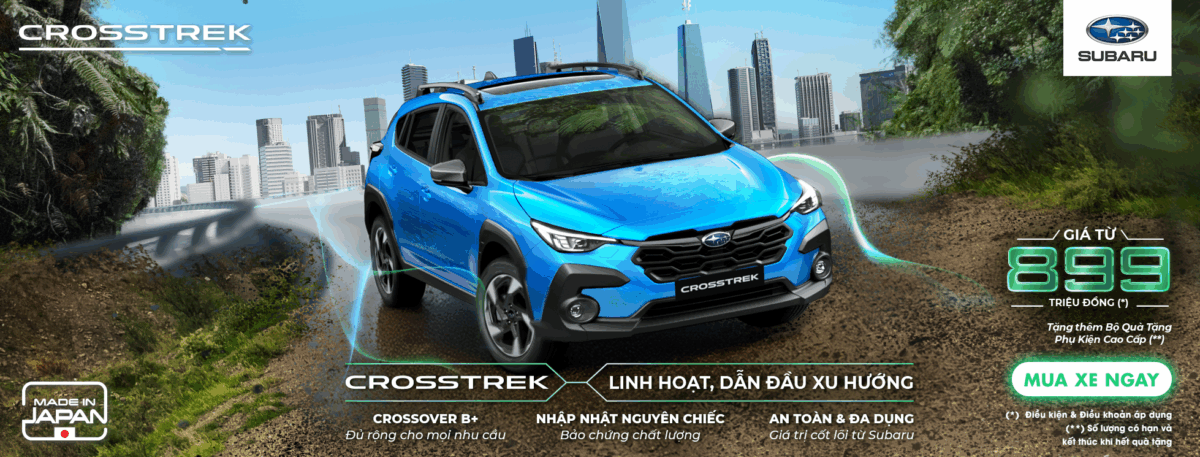 - Crosstrek 2.0 i-S EyeSight Hybrid: Giảm ngay 239 triệu – bản hybrid tiết kiệm nhiên liệu. Tặng bộ đèn LED Viền nội thất dạ quang đa màu Tặng cốp điện + phụ kiện, bảo hành 5 năm, hỗ trợ trả góp nhẹ nhàng. Dành cho khách hàng yêu công nghệ xanh.