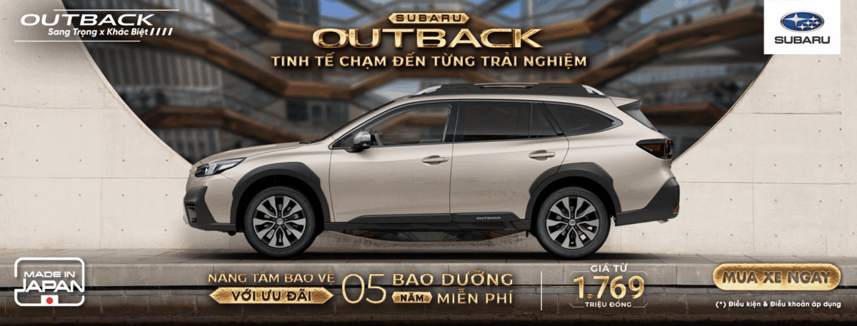 - Outback 2.5 i-T EyeSight: Tặng 5 năm bảo dưỡng miễn phí ( tùy điều kiện nào tới trước) trị giá 55,3 tr – bản cao cấp full EyeSight. Tặng phụ kiện chính hãng, Đặc quyền cho người chọn đẳng cấp.